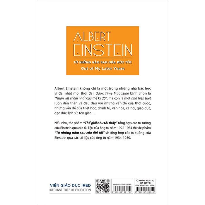 “Từ những năm sau của đời tôi” tập hợp các bài viết, diễn văn và thư từ của Einstein giai đoạn 1934–1950, chia theo chủ đề: Niềm tin & xác tín; Khoa học; Các vấn đề xã hội; Khoa học & đời sống; Những nhân cách lớn; Dân tộc tôi.