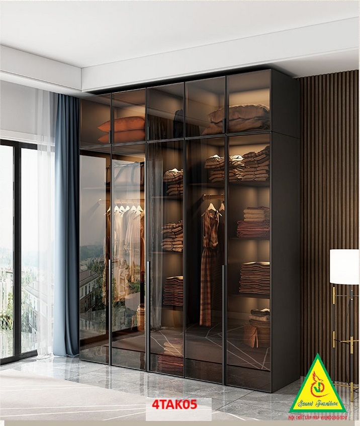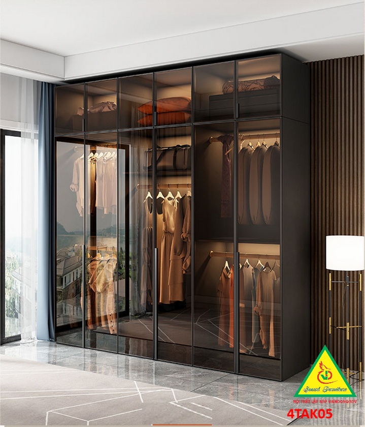✨Tủ quần áo gỗ MDF cánh kính cường lực khung nhôm 4TAK05 - Nội thất lắp ráp Viendong Adv