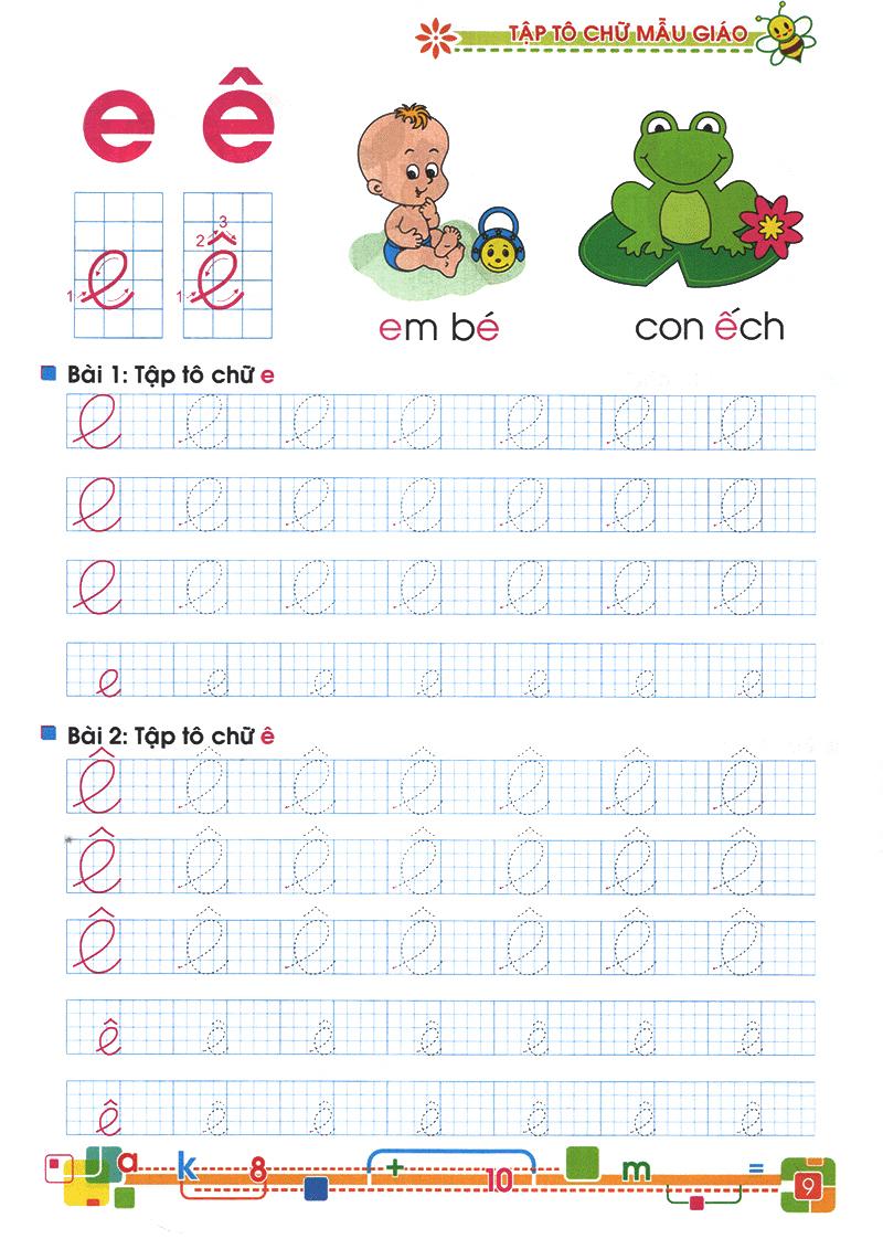 Tủ sách bé vào lớp một - Tập tô chữ mẫu giáo Giúp các bé chuẩn bị vào lớp 1 làm quen với chương trình học tiểu học. Nội dung gần gũi với chương trình giáo khoa và hình minh họa sinh động, bộ sách sẽ giúp các bậc cha mẹ rèn luyện cho con trẻ những nét chữ đầu tiên một cách hiệu quả. Để chuẩn bị vào lớp một, các em cần làm quen và sử dụng thành thục với các chữ cái, các con số từ 1 đến 10, và bước đầu biết viết và ghép vần những chữ cơ bản.