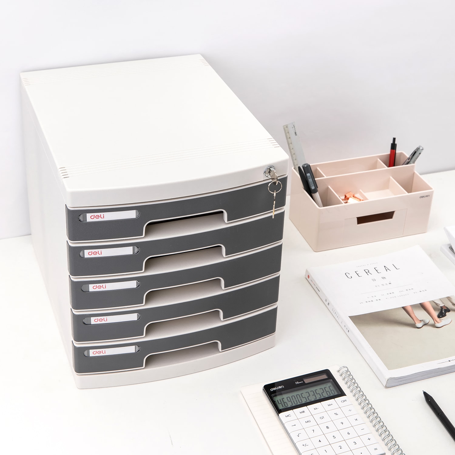 ✨Tủ Tài Liệu 5 Ngăn Deli - Màu Ghi - 1 Chiếc - E8855