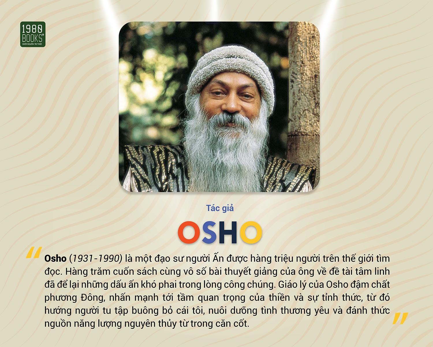Osho (1931-1990) là một đạo sư người Ấn được hàng triệu người trên thế giới tìm đọc. Hàng trăm cuốn sách cùng vô số bài thuyết giảng của ông về đề tài tâm linh đã để lại những dấu ấn khó phai trong lòng công chúng. Giáo lý của Osho đậm chất phương Đông, nhấn mạnh tới tầm quan trọng của thiền và sự tỉnh thức, từ đó hướng người tu tập buông bỏ cái tôi, nuôi dưỡng tình thương yêu và đánh thức nguồn năng lượng nguyên thủy từ trong căn cốt.