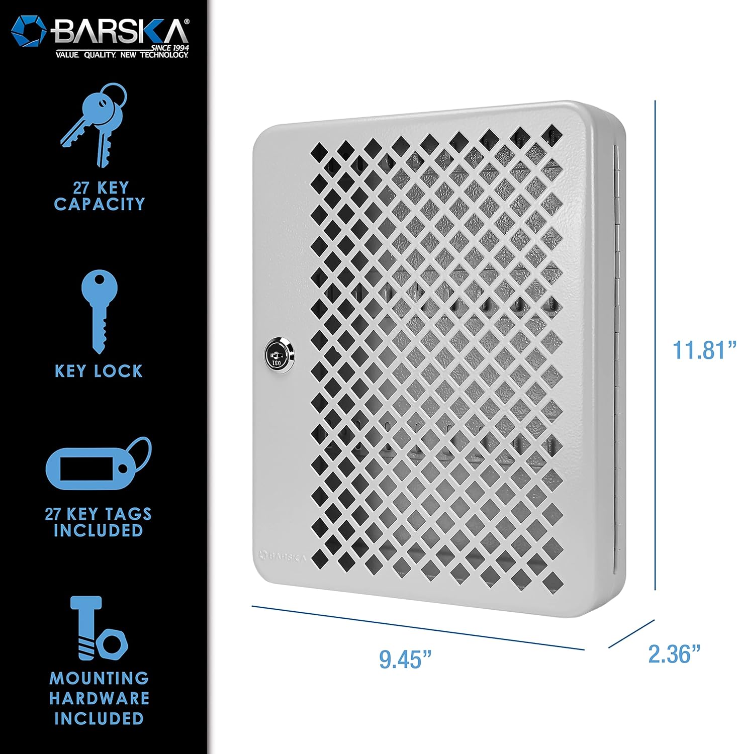 Tủ khóa mặt trước dạng lưới của Barska có tủ dạng móc giúp sắp xếp chìa khóa dễ dàng và tiện lợi. Bên trong tủ khóa này có ba hàng móc. Cửa dạng lưới cho