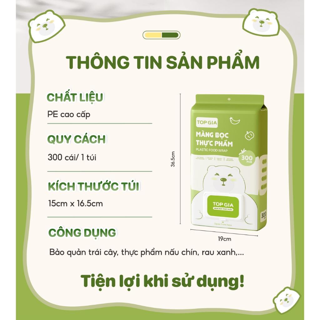 Túi màng bọc thực phẩm treo tường TOPGIA chất liệu PE an toàn, có chun siêu dai đàn hồi cao - Chất liệu PE an toàn - Quy cách: 300 túi/ 1 bịch Thương hiệu: