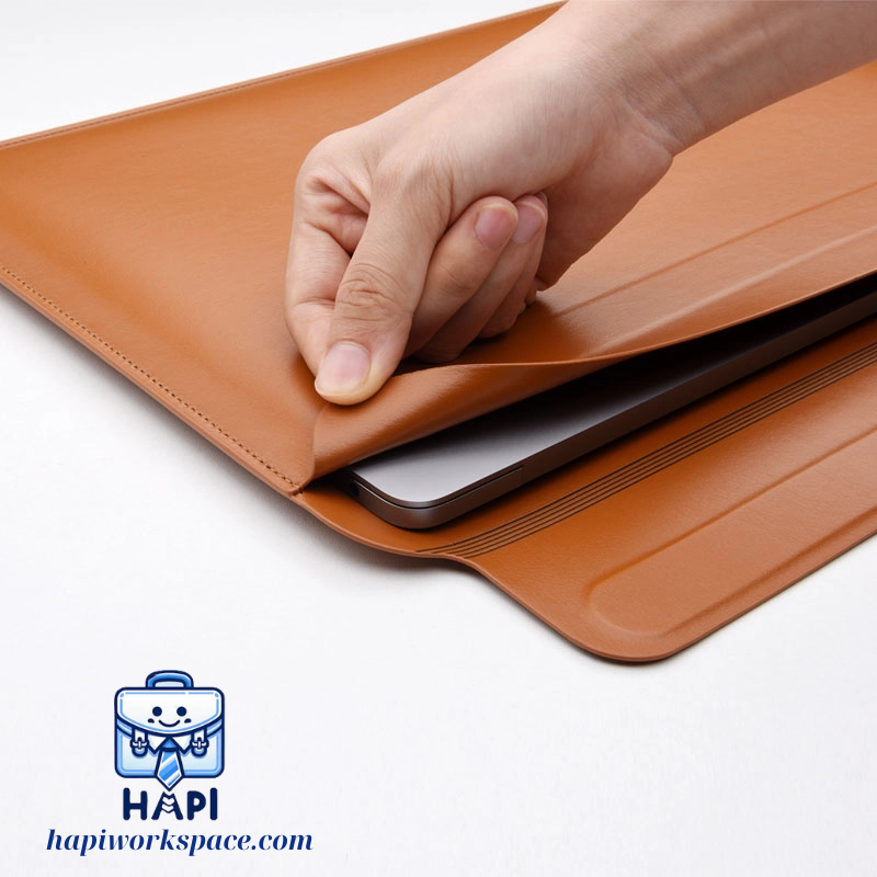 Mua tại TiktokThiết kế tích hợp chức năng kê laptop giúp tạo góc độ công thái học làm giảm áp lực khi sử dụng trong thời gian dài Chất liệu da PU chống thấm nước giúp laptop