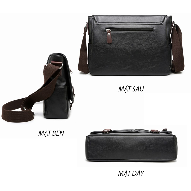 Túi đeo chéo nam ngang nhỏ gọn cao cấp BHM2030 Khá tiện dụng với thiết kế hình hộp chữ nhật gọn gàng cùng màu đen đơn giản dễ dàng kết hợp mọi phong cách thời