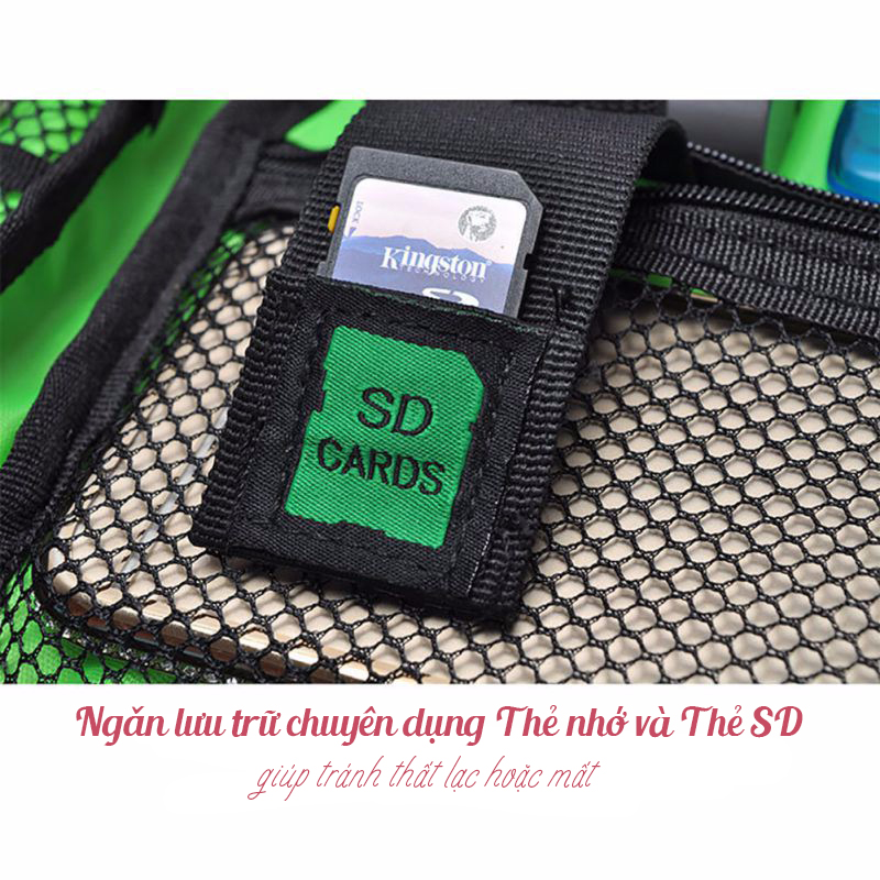 Mua tại TiktokTúi đựng phụ kiện nhiều ngăn vải Nylon chống thấm nước cho Cáp sạc di động, Sạc dự phòng, điện thoại, tai nghe, thẻ nhớ - Hàng chính hãng Giúp bạn sắp xếp gọn gàng lại tất cả phụ kiện di động cần thiết sử dụng hàng ngày hay lưu trữ cất những món bạn không sử dụng tới Thiết kế với lớp vải nylon chống xước, chống thấm và nhiều ngăn đựng tiện lợi, giúp bảo quản cho từng vị trí món đồ yêu thích của bạn Thiết kế hợp lý hơn với nhiều ngăn đựng đồ, và có các ngăn lớn bảo quản riêng: ổ cứng ssd, hdd, hộp box, điện thoại di động, sạc dự phòng,... Sắp xếp gọn gàng hơn rất nhiều với từng ngăn riêng biệt