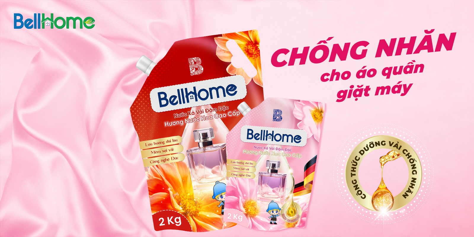 Nước xả vải đậm đặc Bell Home được biết đến như “vị cứu tinh” cho quần áo trong những ngày mưa nồm ẩm ướt hoặc trong những lúc thời tiết âm u mát mẻ, vì lúc này quần áo thường lâu khô và bị ám mùi khó chịu. Sản phẩm không chỉ giúp quần áo có mùi thơm sang trọng mà còn có tác dụng làm mềm vải. Ở bài viết sau, sẽ cung cấp cho bạn một số công dụng của Nước xả vải đậm đặc Bell Home và hướng dẫn cách sử dụng chi tiết nhất. Hãy theo dõi ngay nhé! TÌM HIỂU NƯỚC XẢ VẢI ĐẬM ĐẶC BELL HOME Nước xả vải đậm đặc Bell Home có dạng lỏng đặc, thường được pha vào nước cùng quần áo trước khi kết thúc quá trình giặt. Trong quá trình giặt và tiếp xúc với ánh nắng mặt trời, quần áo thường trở nên khô ráp. Nước xả vải Bell Home sẽ giúp bảo vệ cấu trúc của sợi vải, làm mềm một cách tự nhiên và duy trì hương thơm trên quần áo. Bên cạnh đó, các thành phần được bổ sung trong nước xả vải đậm đặc Bell Home cung cấp nhiều công dụng khác nhau như bảo vệ quần áo tối ưu, tan bọt xà phòng, duy trì hương thơm lâu gấp 3 lần so với sản phẩm nước giặt thông thường và khả năng loại bỏ vi khuẩn lên tới 99%. TÁC DỤNG CỦA NƯỚC XẢ VẢI ĐẬM ĐẶC BELL HOME Nước xả vải đậm đặc Bell Home được ứng dụng công nghệ sinh học hiện đại, đảm bảo an toàn, lành tính với da tay. Đặc biệt, sản phẩm có một số công dụng nổi bật như sau: Giúp làm mềm sợi vải Các hoạt chất và thành phần có trong nước xả vải đậm đặc Bell Home sẽ giúp làm mềm sợi vải, ngay cả khi quần áo được phơi trong một thời gian dài. Điều này sẽ mang lại cảm giác mềm mại và dễ chịu hơn khi bạn mặc đồ. Sở hữu mùi hương thanh lịch, cuốn hút Mồ hôi tích tụ trên quần áo tạo sẽ điều kiện cho vi khuẩn phát triển và gây ra mùi ẩm mốc khó chịu, đặc biệt vào những ngày mưa nồm ẩm ướt. Sản phẩm nước xả Bell Home ứng dụng công nghệ khử mùi tiên tiến, sẽ giúp loại bỏ tất cả mùi hôi khó chịu, giữ quần áo của bạn luôn thơm mát và thoáng khí Không chỉ vậy, Bell Home còn được kế thừa công nghệ lưu hương đa tầng từ Bell Flavors & Fragrances, có khả năng lưu hương không kém cạnh so với dòng nước hoa cao cấp. Với nước xả vải đậm đặc Bell Home, quần áo của bạn sẽ có mùi hương dễ chịu và thơm ngát cả ngày, thậm chí ngâm qua đêm vẫn lưu hương tinh tế. Bảo vệ quần áo tối ưu