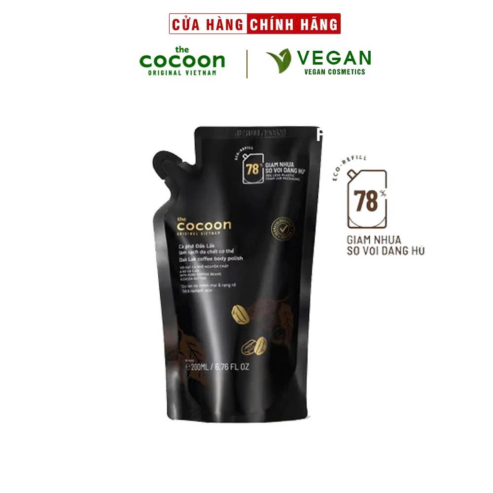 Tẩy da chết cơ thể cà phê Đắk Lắk Cocoon cho làn da mềm mại và rạng rỡ 200ml - LS036 - The Cocoon Original Vietnam Mô tả sản phẩm: - Tên sản phẩm: Tẩy
