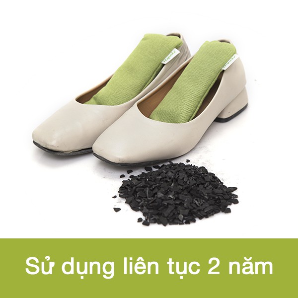 Túi than hoạt tính khử khuẩn không khí được tạo ra từ 100% than hoạt tính gáo dừa tốt nhất của Bến Tre với ưu điểm không hóa chất, không mùi, thân thiện với môi trường. Có tác dụng hấp thu mạnh mẽ liên tục các loại khí độc, nấm mốc, vi khuẩn, mùi hôi và các chất ô nhiễm độc hại xuất hiện trong giày dép, tủ đựng giày dép.