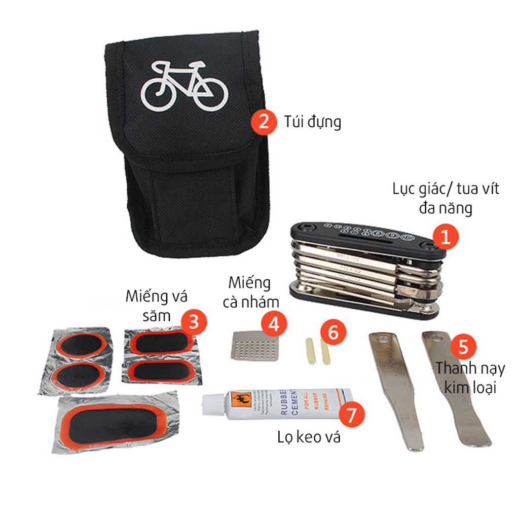Dụng Cụ Sửa Chữa Cầm Tay Đa Năng 15 món Với kích thước nhỏ gọn, tiện lợi có thể mang theo bên mình để lắp ráp, sửa chữa xe đạp khi gặp sự cố. Ngoài
