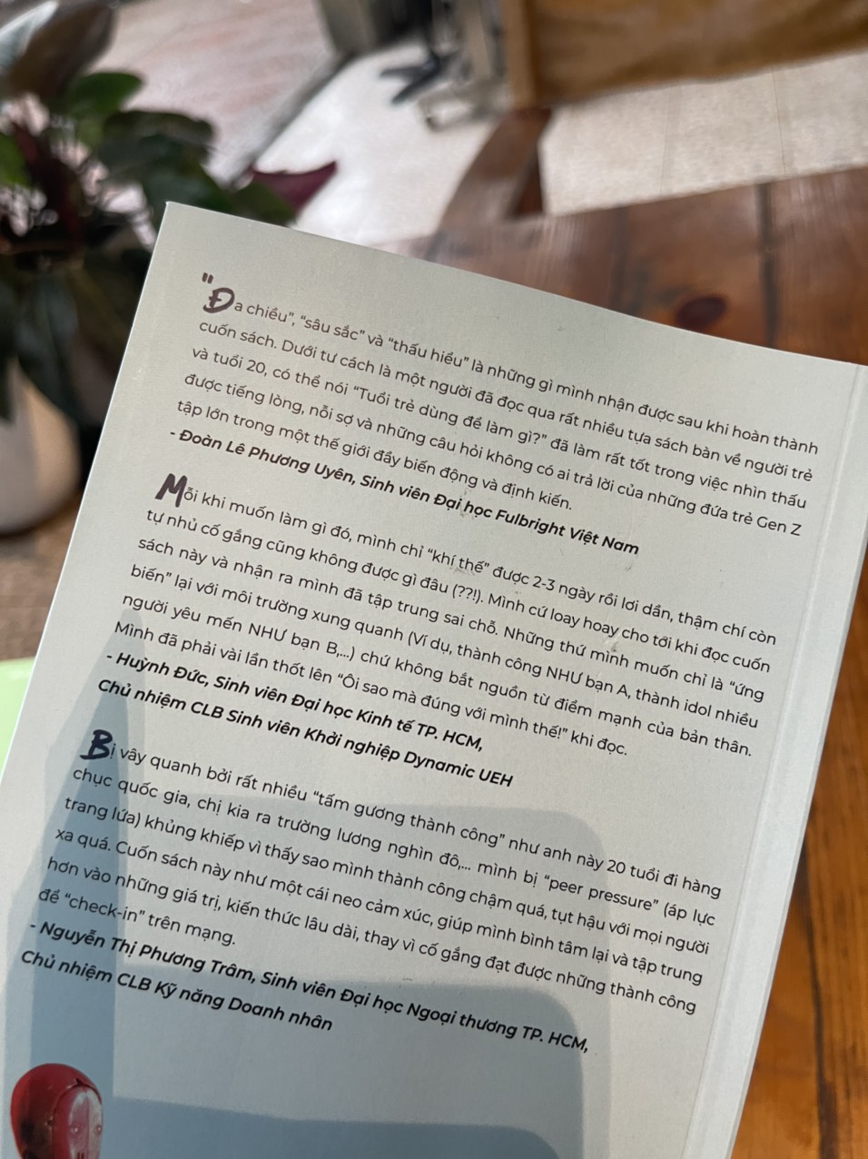“Những bài viết trong cuốn sách này là những trải nghiệm của bản thân tôi cũng như những trăn trở mỗi ngày của tôi với một mong mỏi: giúp các bạn trẻ tận dụng được thời gian tuổi trẻ và những tiềm năng của mình một cách hiệu quả nhất để có thể tiếp tục gặt hái những thành công quan trọng hơn trong cuộc sống.”