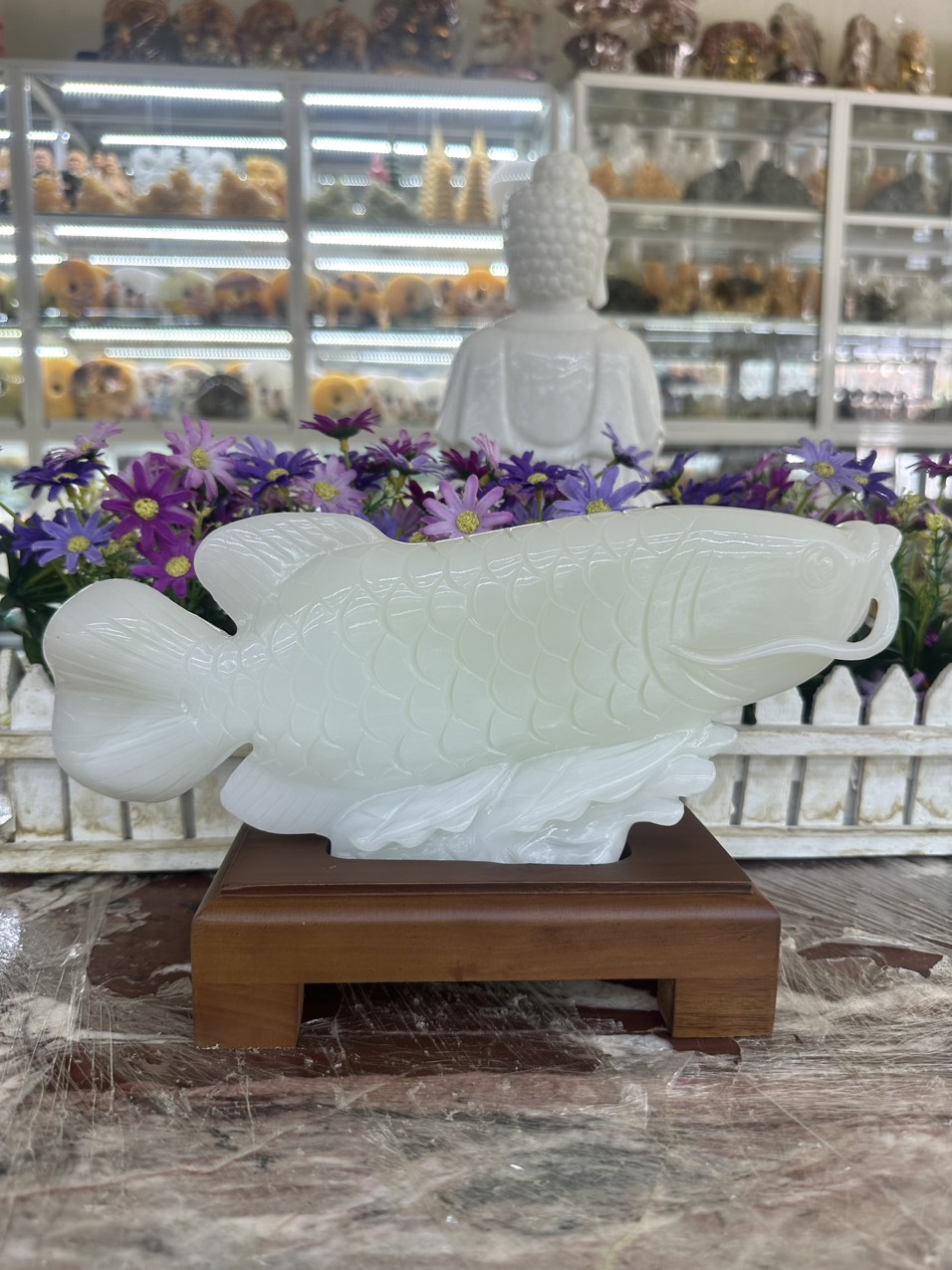 ✨Tượng cá Rồng Kim Long, cá phong thủy tài lộc đá bạch ngọc - Dài 30 cm