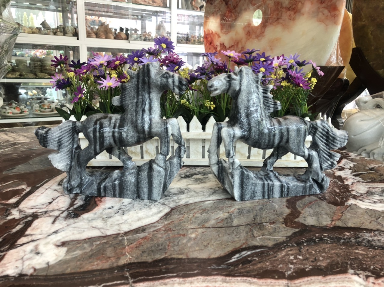 ✨Tượng cặp Ngựa phong thủy công danh tài lộc đá cẩm thạch vân đen - Dài 20 cm