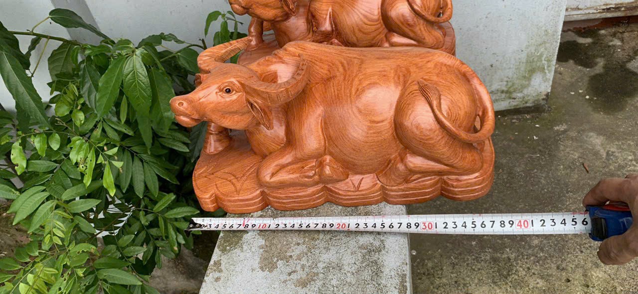 Tượng con trâu phong thủy được làm bằng chất liệu gỗ hương đá liền khối tự nhiên 100% Kt ngang 40 cm _ Tượng được chạm khắc tỉ mỉ ,tinh xảo kỳ công .Đi hầu hết tất cả mọi chi tiết góc ngách nội dung hoa văn của tượng đều được gọt tỉa chỉnh sửa sắc nét hoàn toàn bằng tay thủ công .