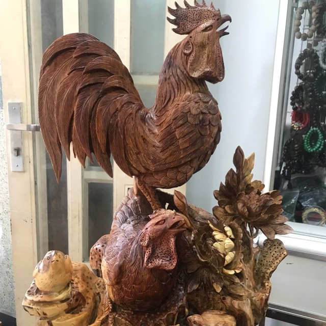 Tượng Gỗ Mỹ Nghệ Chạm Hình Gia Đình Gà Gỗ Hương Hàng Vip Đẹp Liền Khối Cao 68cm đk 45cm Sâu 38cm