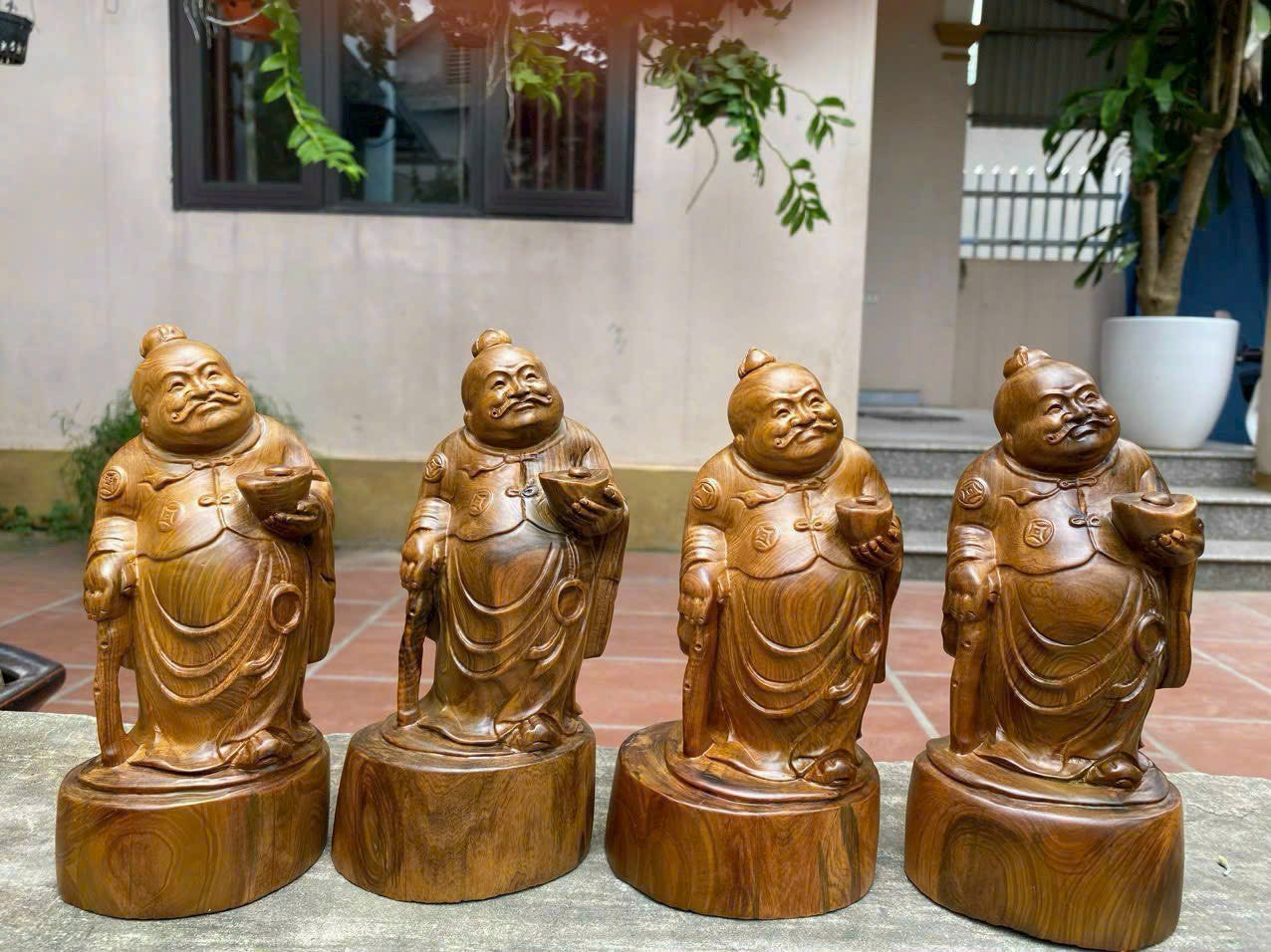 _ Bộ tượng ngũ vị thần tài được làm bằng chất liệu gỗ bách xanh liền khối tữ nhiên 100% _ Kt cao 20×8×6cm _ Tượng ngũ vị thần tài được trạm trổ ,điêu khắc