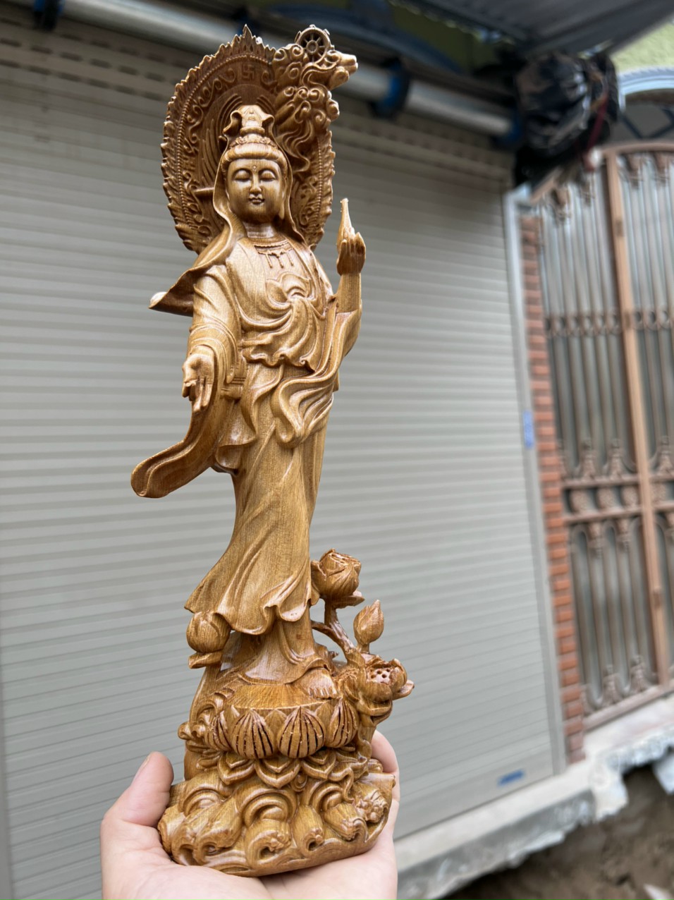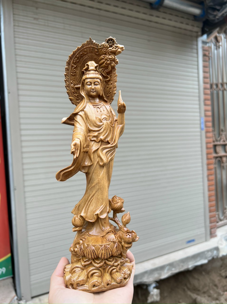 ✨Tượng phật bà quan âm bồ tát bằng gỗ bách xanh thơm nức kt cao 30×8×9cm