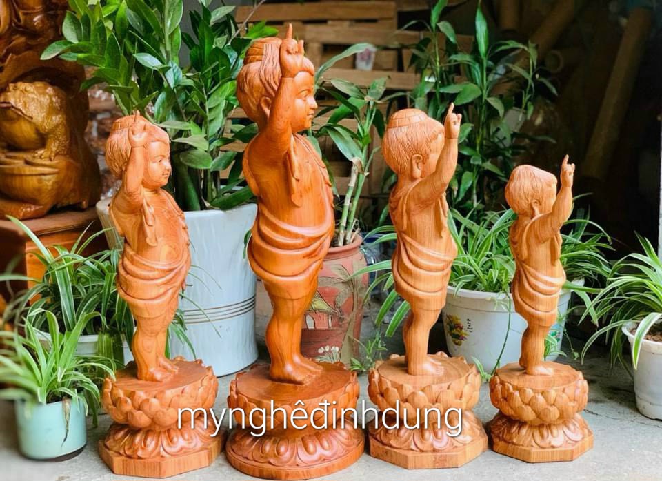 Tượng phật đản sanh được làm bằng chất liệu gỗ hương đá liền khối tự nhiên 100% Kt cao 30×12×12cm _ Tượng được chạm khắc gọt tỉa vô cùng ti mi tinh xảo kỳ công Đi hầu hết tất mọi chi tiết góc ngách nội dung hoa văn của tượng đều được gọt tỉa chỉnh sửa sắc nét hoàn toàn bằng tay thủ công. TƯỢNG CHẾ TÁC LÀM VÀ HOÀN THIỆN TỪ BÀN TAY KHỐI ÓC TÀI HOA VÀ NHỮNG NGƯỜI THỢ GIÀU KINH NGHIỆM CŨNG NHƯ TAY NGHÊ CAO TRONG LÃNG NGHÊ TRUYỀN THỐNG