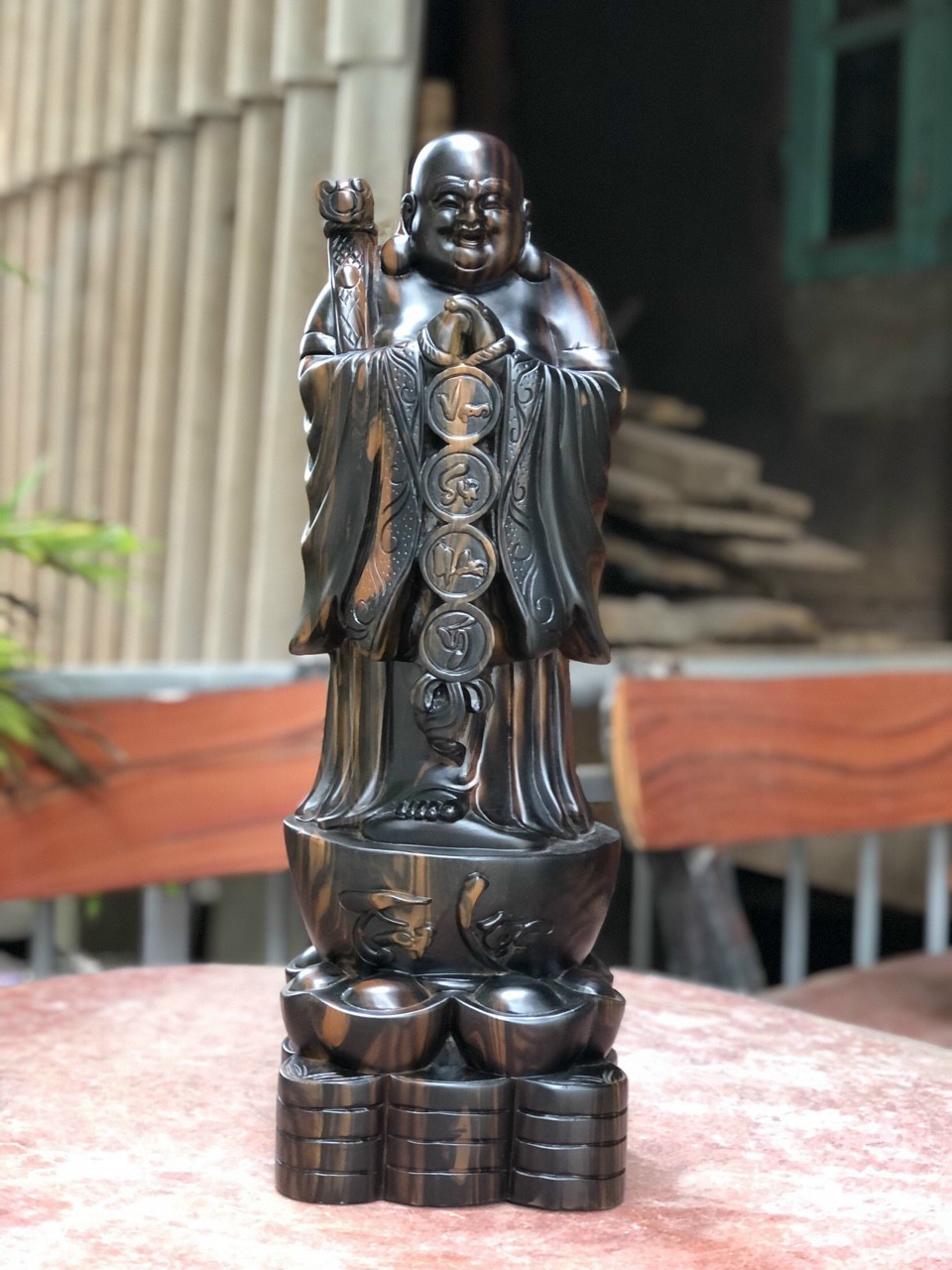 ✨Tượng phật di lặc chúc phúc bằng gỗ mun kt cao 60×20×15cm