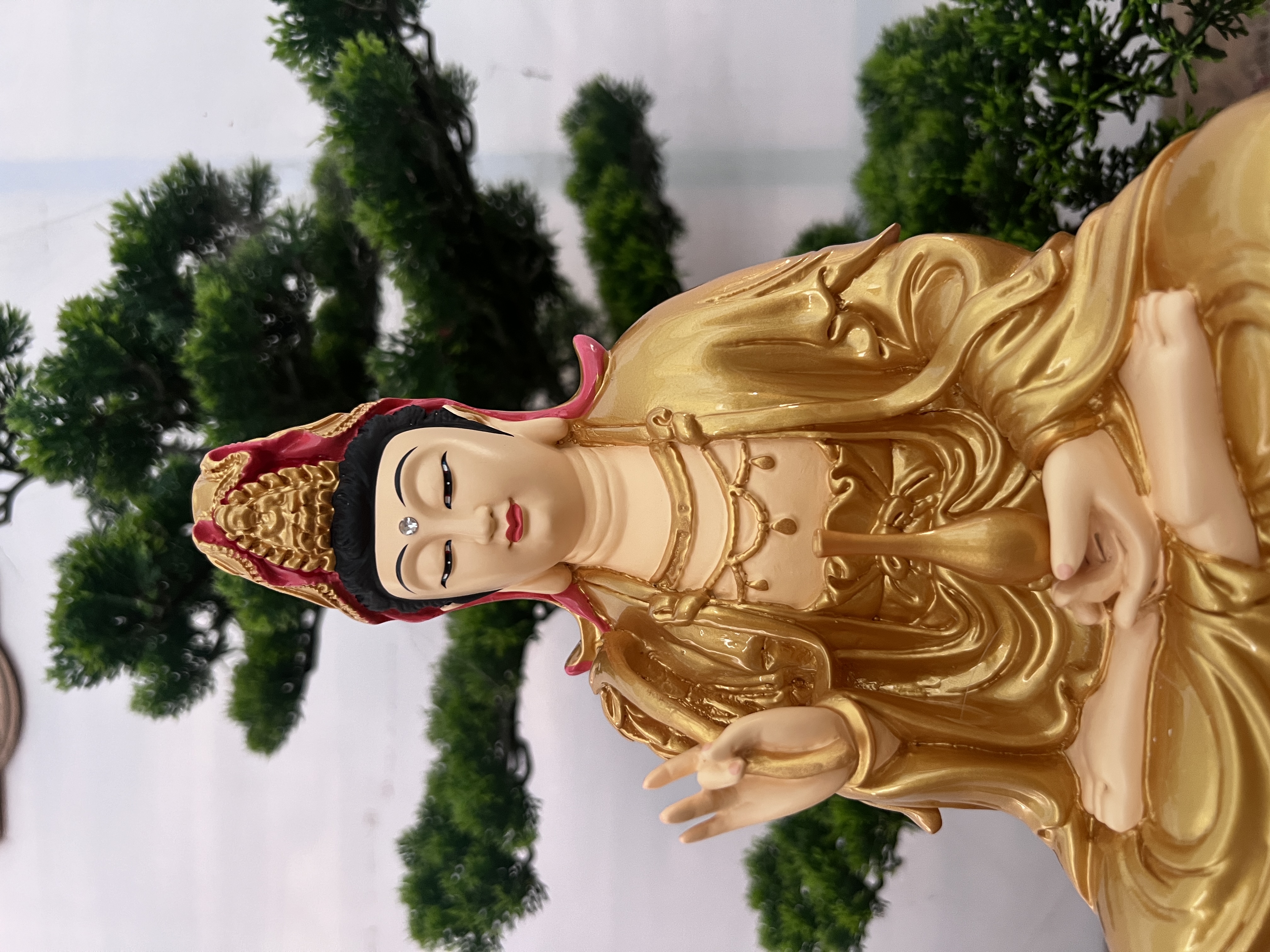 Tượng Phật quan thế âm cao 30cm tính cả đế Chất liệu composite. Cân Nặng: 2kg Màu nhũ như hình chụp Shop chụp bằng camera thường. KT 17 x 17 x 30 Nhắc đến Phật giáo, chúng ta nghĩ đến từ bi cứu khổ. Hình ảnh cứu khổ tiêu biểu tuyệt vời nhất không ai khác hơn là đức Bồ-tát Quán Thế Âm luôn hiện hữu trong tâm thức của những người con Phật. Vị Bồ-tát này có đầy đủ phẩm chất của một người mẹ trong tất cả những người mẹ. Hình như trong mọi trái tim của những người con Phật thuần thành - nhất là giới Phật tử bình dân - không ai là không có hình ảnh đáng tôn kính của vị Bồ tát giàu lòng bi mẫn này.