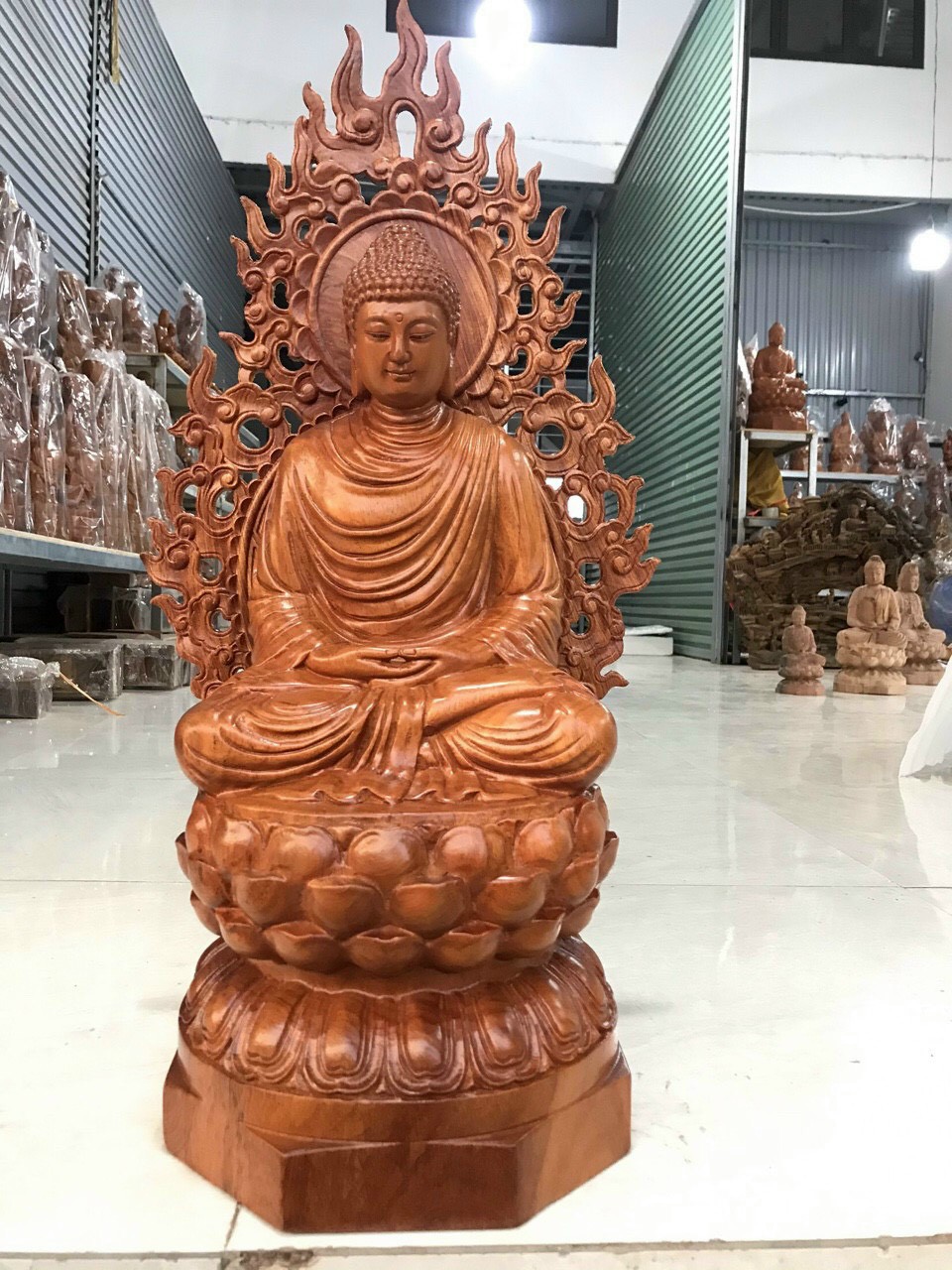 Mua tại Tiktok_ Tượng phật thích ca có lá chắn sau lưng được làm bằng chất liệu gỗ hương đá tự nhiên 100% ,Và được sơn pu phun bóng mờ giữ lại mầu sắc vân gỗ tự nhiên