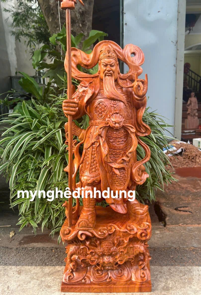 Tượng Quan Công đứng cầm đao cao 80cm | Quan Thánh gỗ hương đứng trấn ải