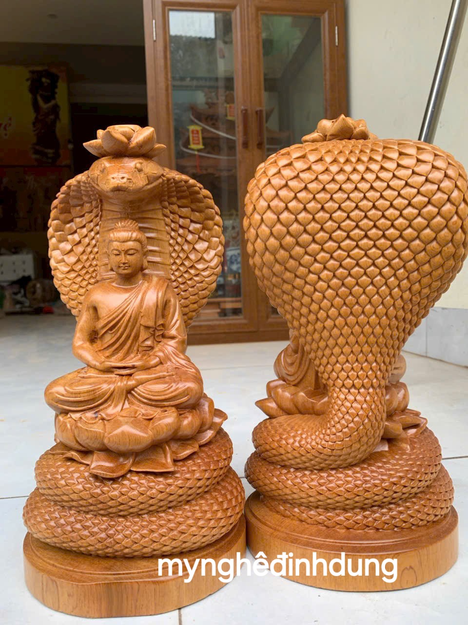 ✨Tượng thần rắn bảo vệ đức Phật bằng gỗ ngọc Am thơm nức cao 40x19x18cm