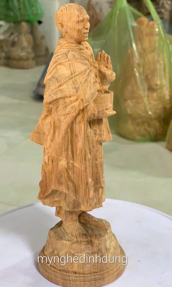 _ Tượng thầy thích minh tuệ được làm bằng chất liệu gỗ ngọc am liền khối tự nhiên 100% _ Kt cao 20×8×6cm _ Tượng được chạm khắc gọt tỉa vô cùng ti mỉ tinh