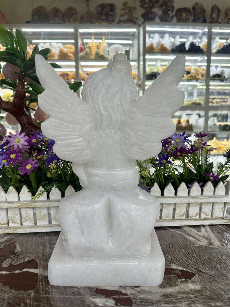 Thiên Thần Hộ Mệnh Đá Mỹ Nghệ | Tượng Thiên Thần Hộ Vệ Đá Cẩm Thạch Trắng Vân Mây Nguyên Khối