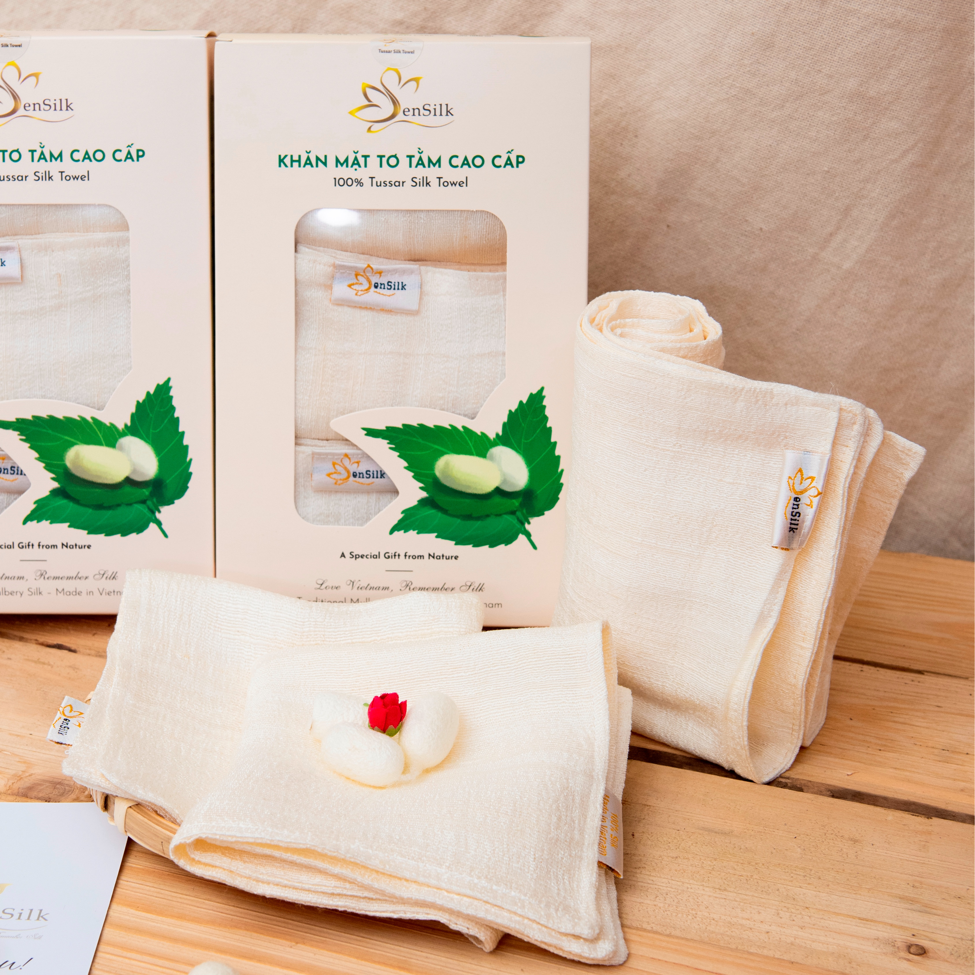 Khăn mặt tơ tằm ra đời với tâm huyết đưa Lụa Tơ Tằm trở thành mặt hàng tiêu dùng hàng ngày cho cộng đồng. Từ đó, SenSilk phối hợp với các cơ sở dệt sợi
