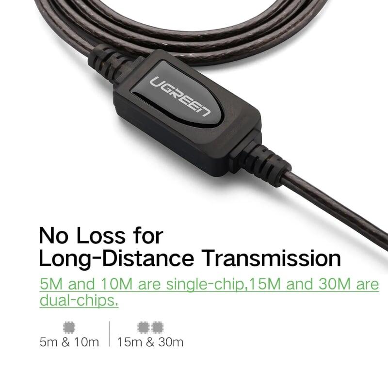Ugreen 10319 5m usb 2.0 active extension cable with chipset đen us121