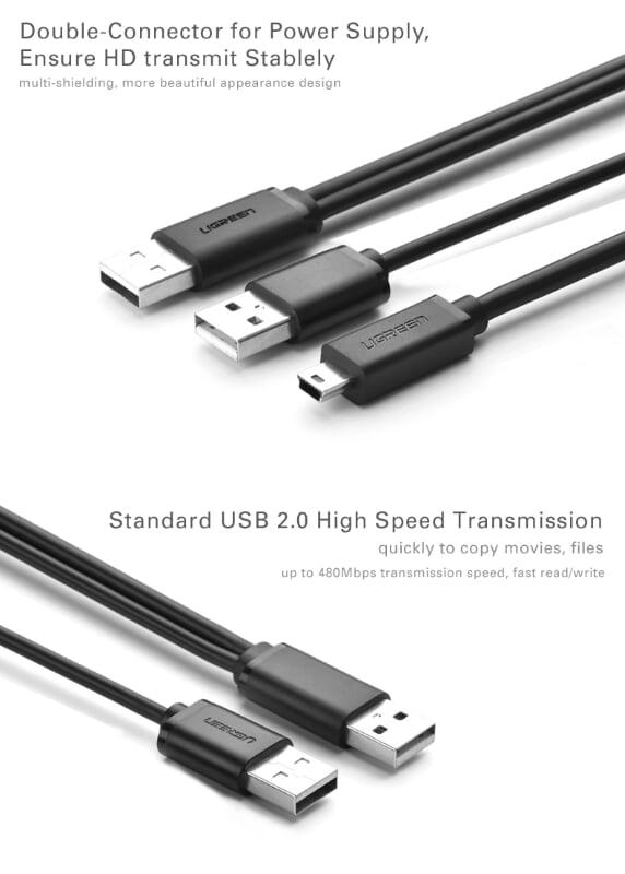 1. Transmission rate: 480mbps 2. Cable lenght: 1m 3. It's also backward compatible with full-speed USB 1.1 (12Mbps) and low-speed USB 1.0 (1.5Mbps) 4. Plug and play, no driver needed. 5. Good quality ugreen usb