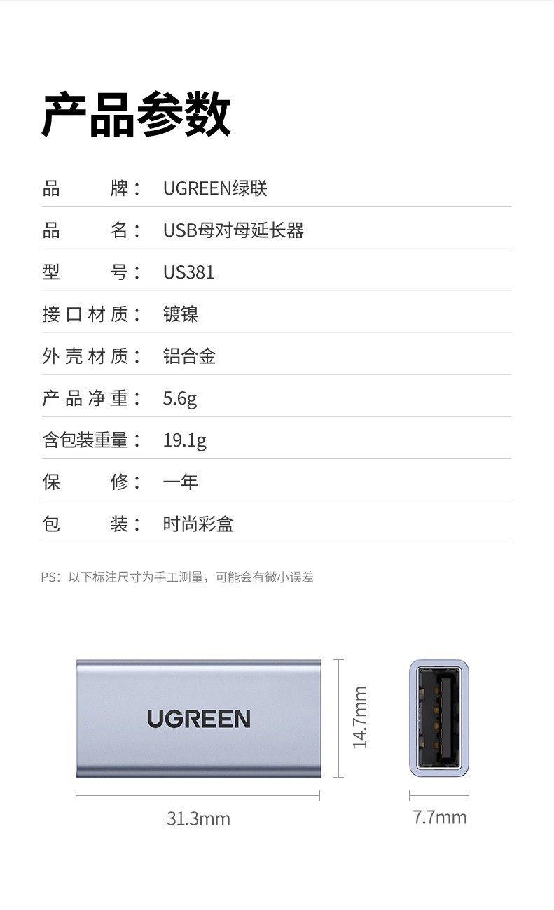 ✨Ugreen UG20119US381TK đầu nối 2 cáp usb 3.0 vỏ nhôm F ra F cao cấp - HÀNG CHÍNH HÃNG