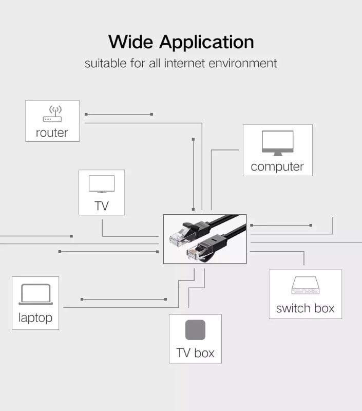 Dây cáp mạng Lan Cat6 Dẹt cho máy tính, Laptop chính hãng Vention + Mạng dây cho gia đình và văn phòng: Kết hợp hiệu suất chất lượng cao với khả năng tương thích phổ