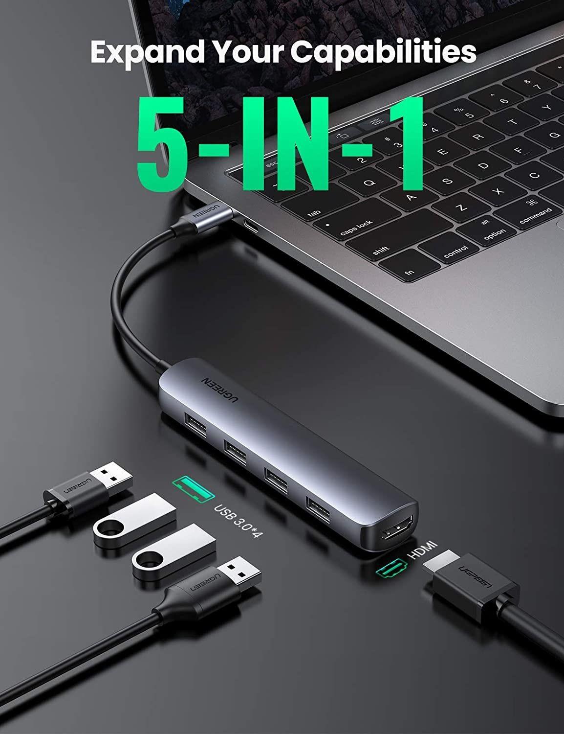 Mua tại Tiktok- Ugreen 5 in 1 USB-C Hub 4 USB 3.0 Port And 1 HDMI Port