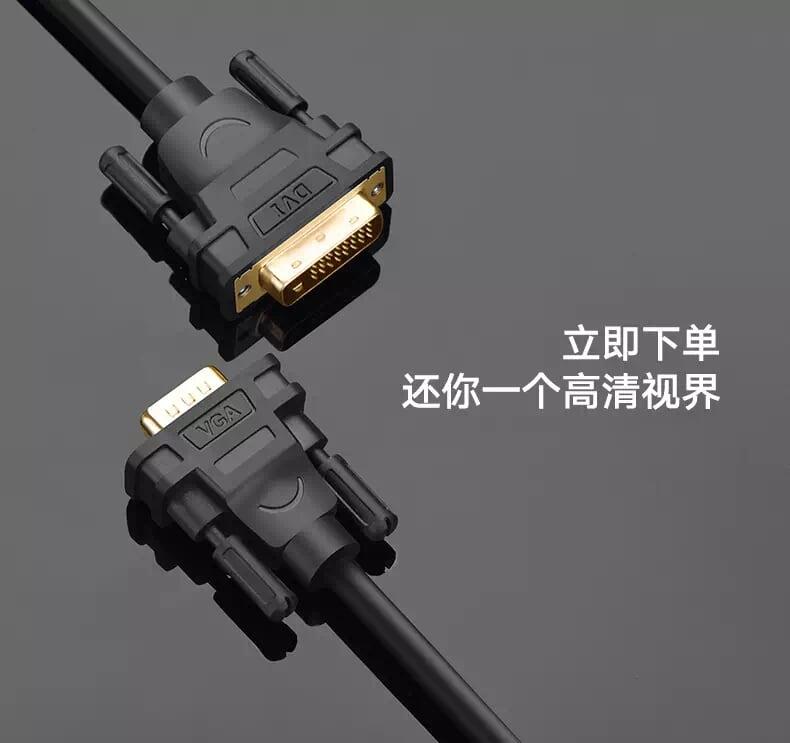 Ugreen 30741 Cáp chuyển đổi DVI 24+5dương sang VGA dương dài 1m DVI24+5 male to VGA male cable DV102 1. Length : 1M 2. Color : Black 3. Cable DVI24+5 male to VGA male 4.