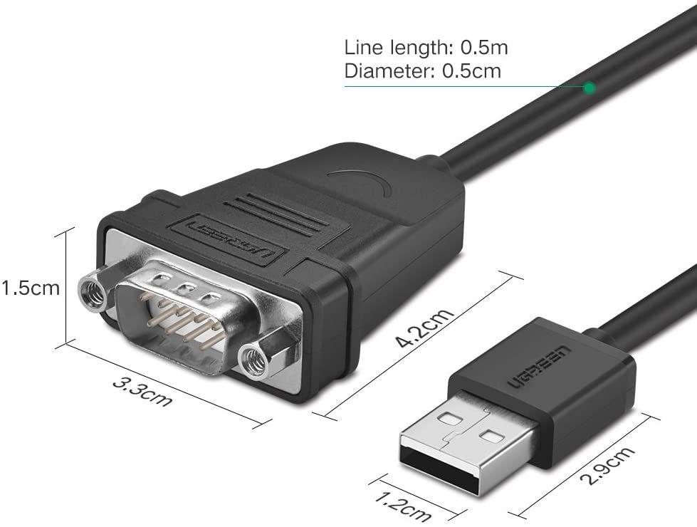 Ugreen 20222 2m usb to db9 rs 232 cablechipset pl2303ta cr104 1. Length: 2m 2. Màu Đen 3. USB 2.0 - COM RS232 Cao Cấp 4. 170 5. 20 x 20 x 5 cm