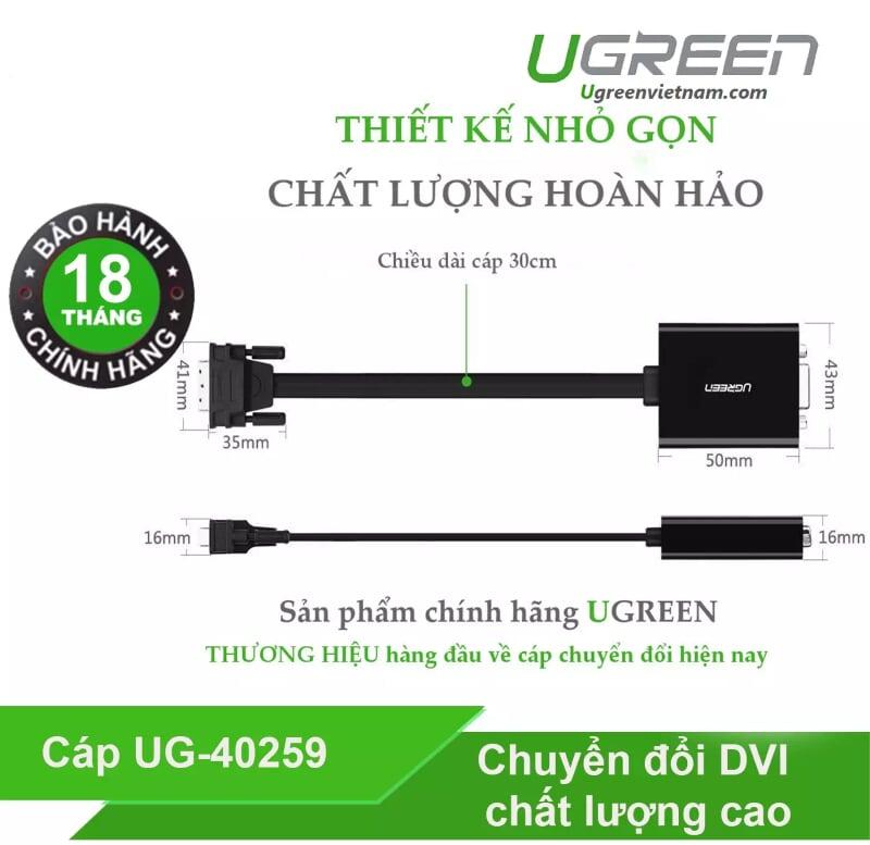 Cáp chuyển đổi DVI 24+1 to VGA Ugreen 40259 cao cấp chính hãng