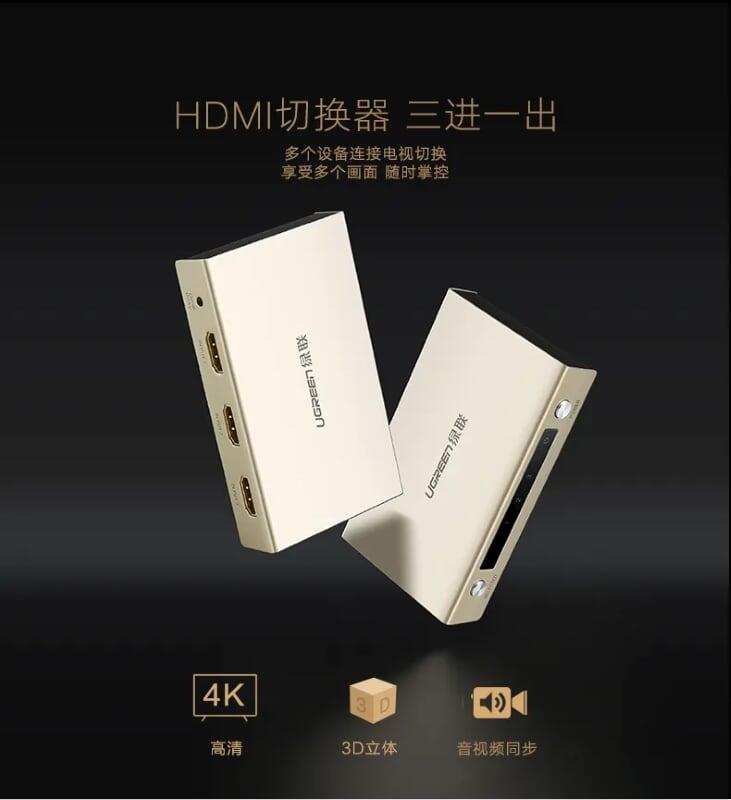 Bộ gộp HDMI 3 vào 1 cao cấp, chính hãng Ugreen 40215