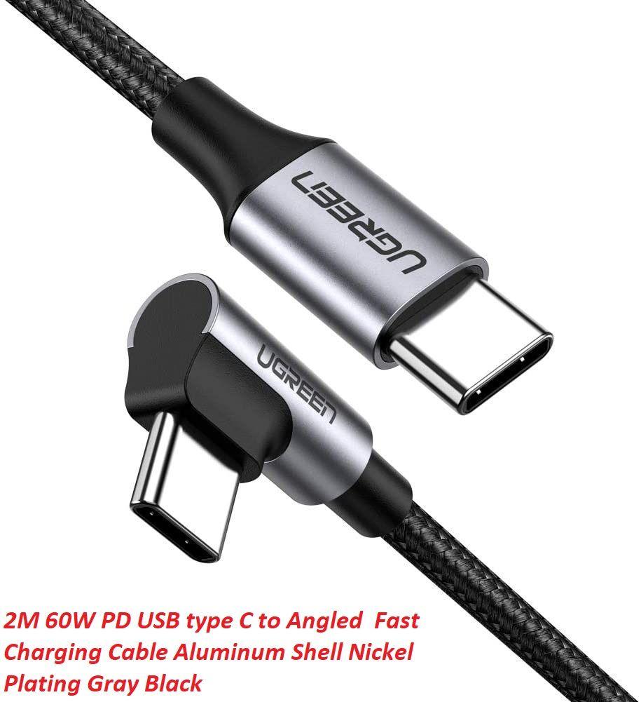 ✨Ugreen UG50125US255TK 2M 60W bẻ góc 90 độ hỗ trợ sạc nhanh PD cáp USB type C màu đen mạ nickel đầu bọc nhôm - HÀNG CHÍNH HÃNG