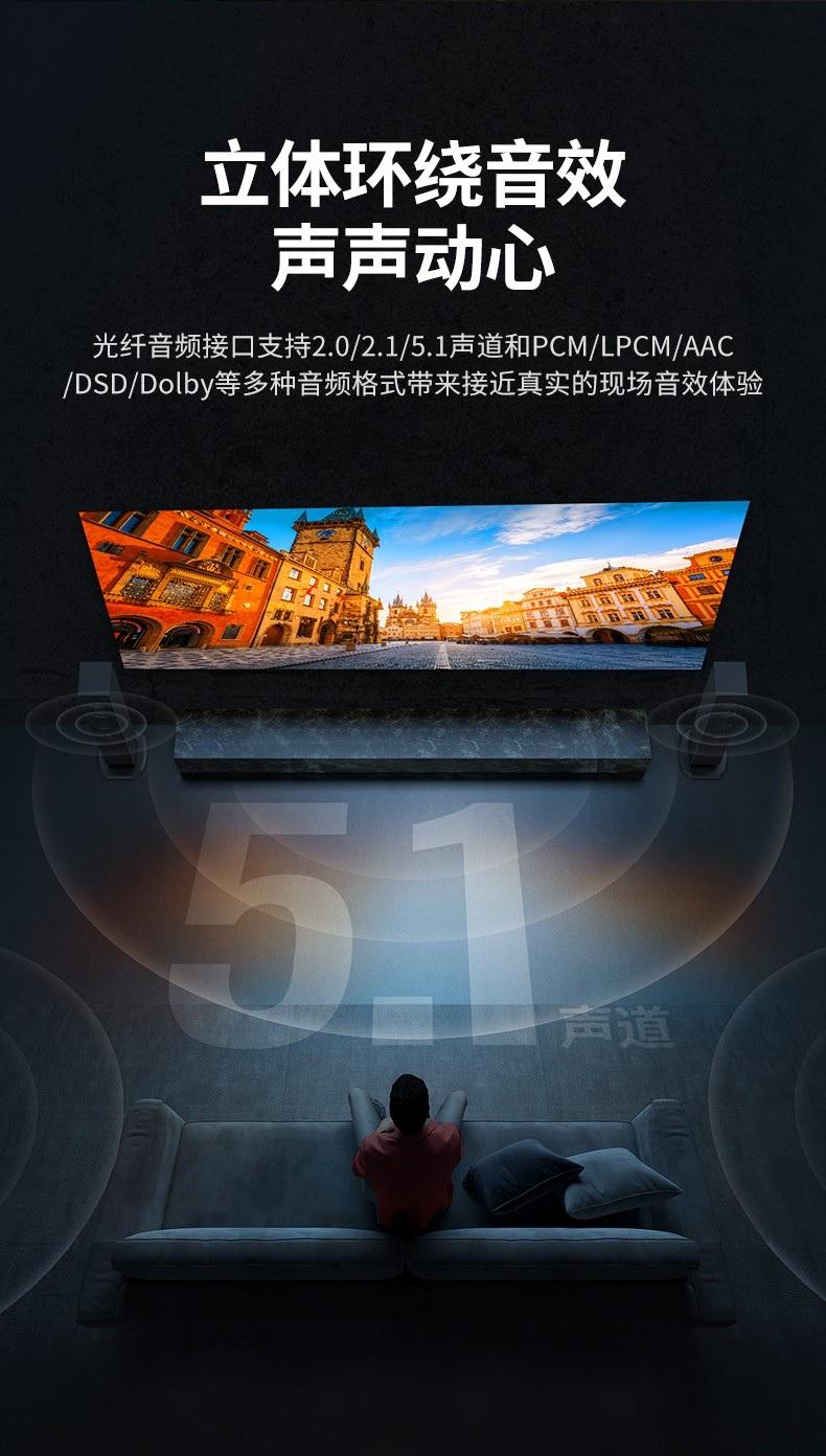 HDMI Audio File Format: Supports PCM/LPCM/AAC/DTS/DSD/Dolby, and 2.0/2.1/5.1/7.1 channels