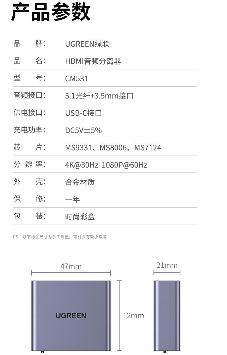 ✨Ugreen UG60649CM531TK 4K @ 30Hz Bộ chia âm thanh hình ảnh HDMI với cổng quang OPTICAL + 3.5mm - HÀNG CHÍNH HÃNG