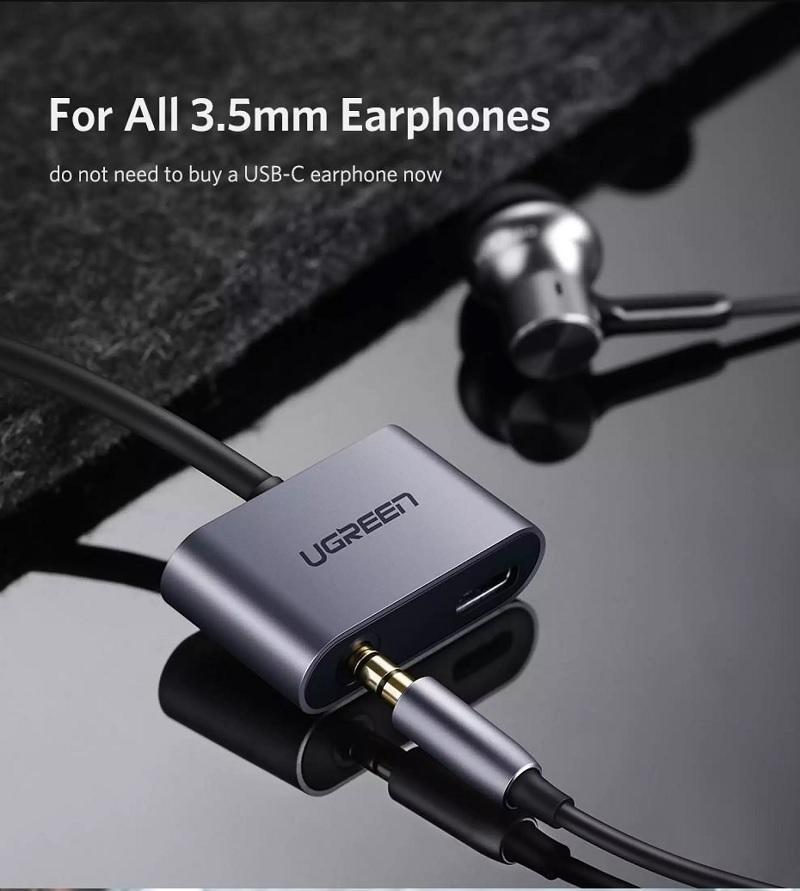 ✨Ugreen UG60715CM193TK 7cm bẻ góc 90 độ USB type C ra 3.5mm Bộ chuyển đổi có chipset hỗ trợ cổng nguồn - HÀNG CHÍNH HÃNG
