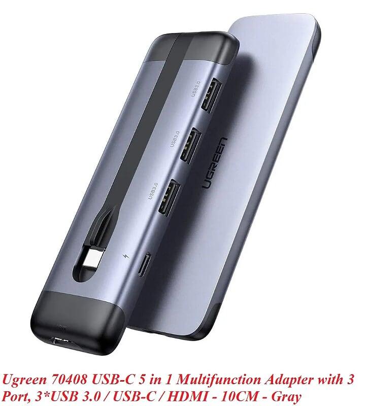 ✨Ugreen UG70408CM285TK 10CM màu xám USB type C 5 trong 1 hub 3 x USB 3.0 + sạc PD 100W + HDMI - HÀNG CHÍNH HÃNG
