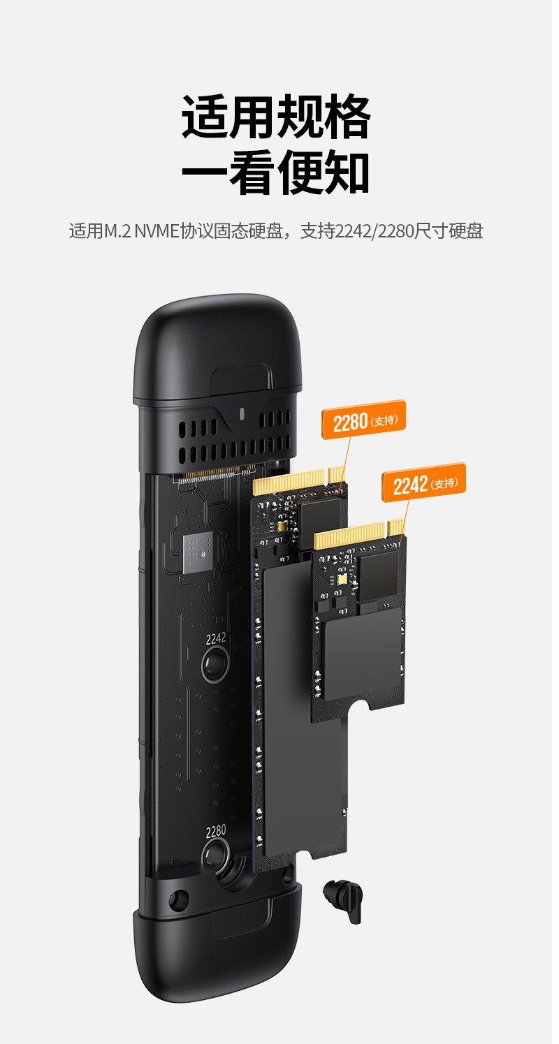1. Color: Deep Gray - Deep Gray 2. Connection cable length: 50CM 3. Input: USB-C 4. Output: M.2 B-key 5. Support data transfer rate up to 6Gbps 6. Shell material: Aluminum alloy 7. Operation LED: