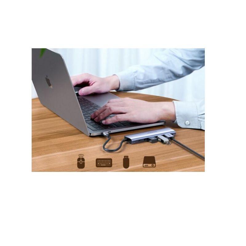 MÔ TẢ SẢN PHẨM Cổng loại C 11 trong 1: Tương thích HDMI + USB3.0 * 1 + USB2.0 * 3 + PD 87W + TF + SD + 100M RJ45 + AUX +