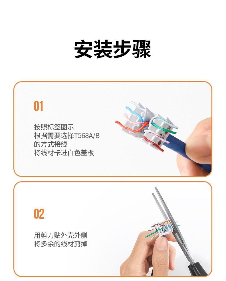 1. Shell material: PC 2. Connector: one end RJ45 female, one end IDC 3. Support Poe type: (POE), (POE +) 4. Designed for Cat6 cable(1000Mbps) 5. Applicable conductor specification: 23~24AWG 6. 15 x 10 x