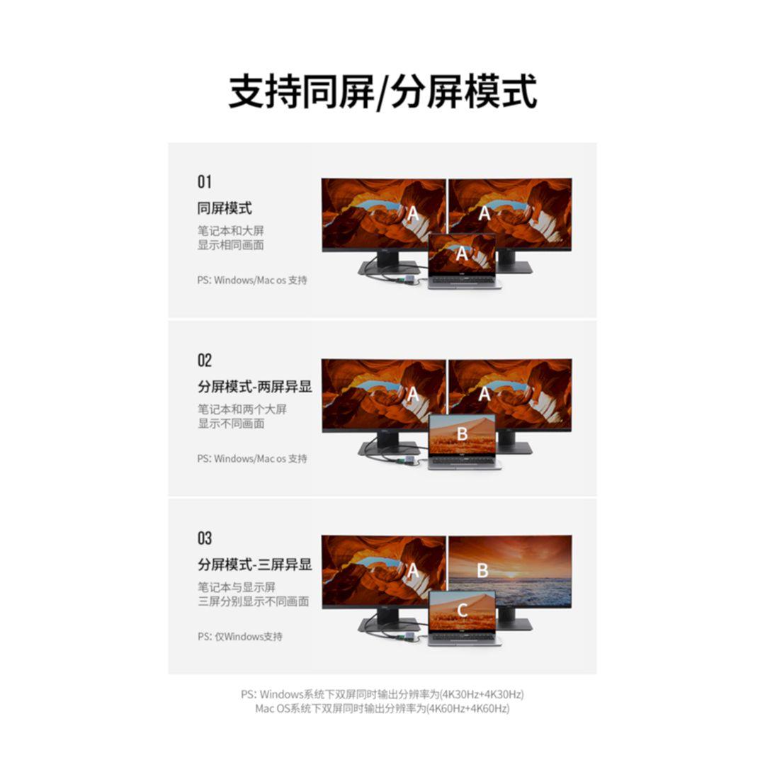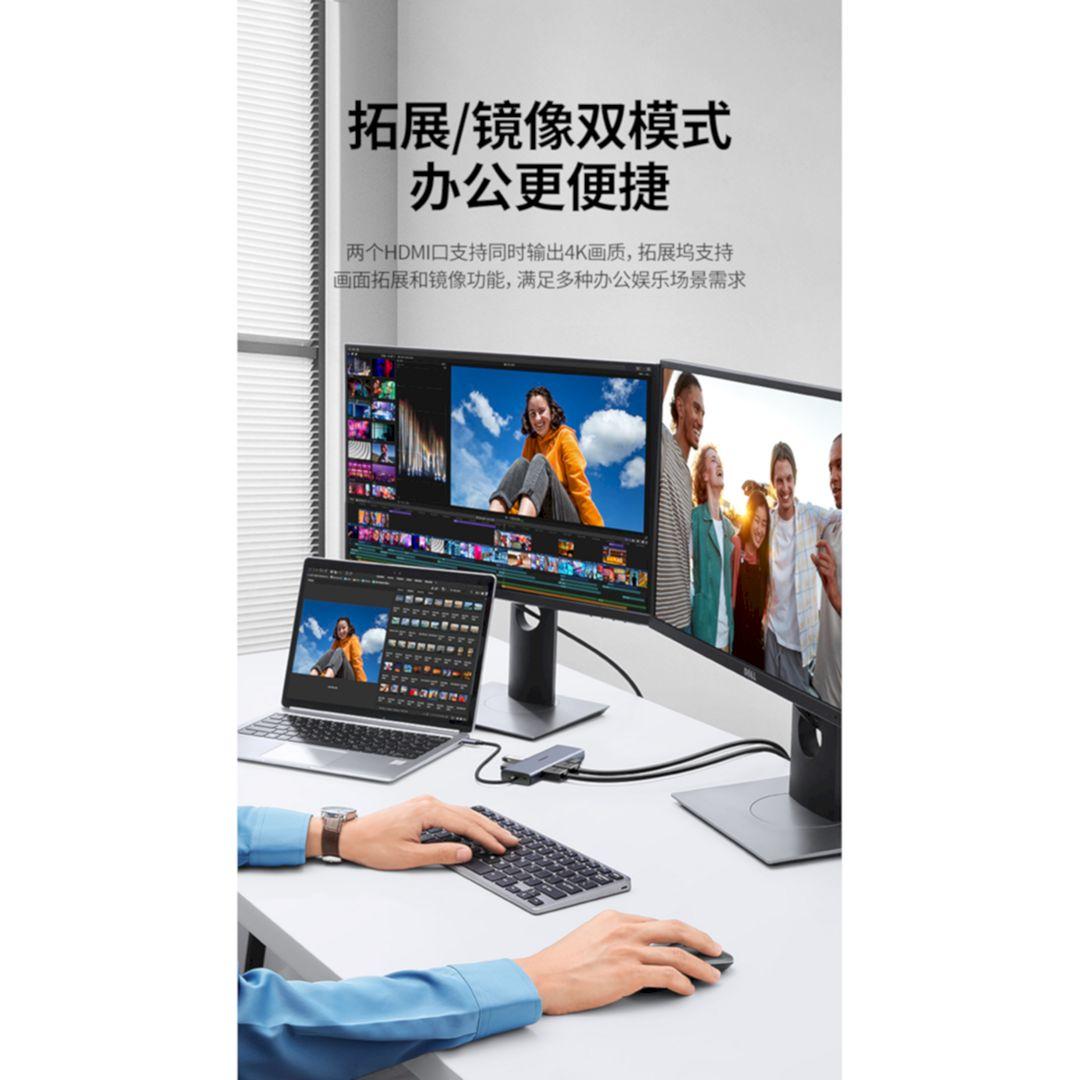 1. Features: Extend more connections from USB Type-c 2. Input: USB Type-C positive 3. Output: 2*usb-c + RJ45 + HDMI 4K60HZ + PD + SD + TF + 2*USB3.0 4. Material: aluminum alloy shell, gold-plated