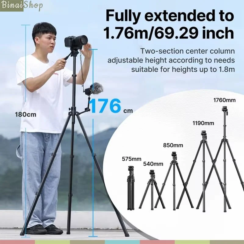 - Chiều cao thay đổi theo nhu cầu sử dụng từ 575mm đến 1760mm là công cụ hữu hiệu cho phát trực tiếp, quay phim, chụp hình,....