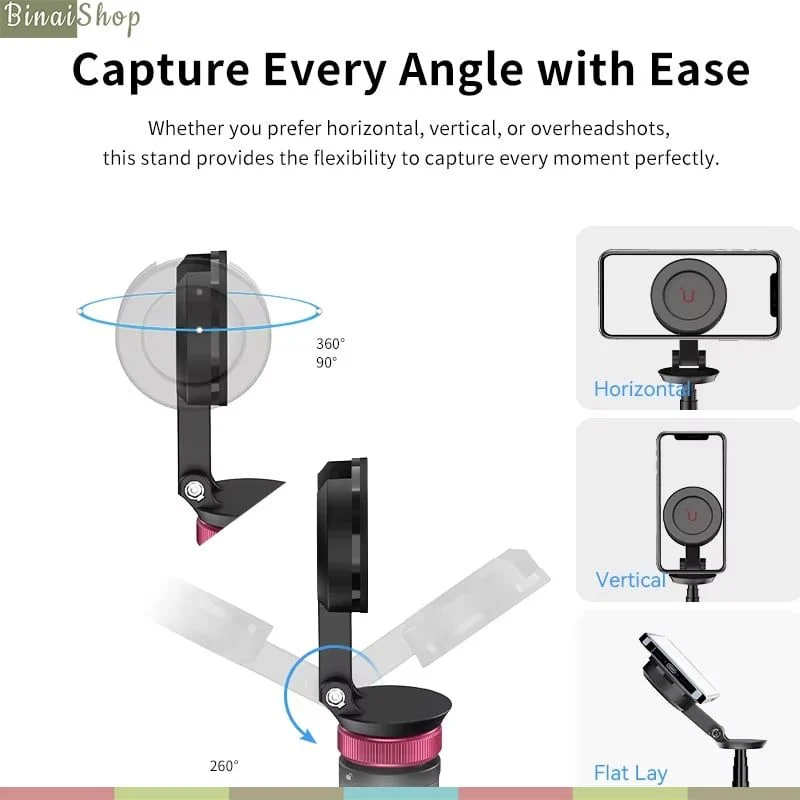 - Tripod Ulanzi MT-84 thiết kế chắc chắn từ hợp kim nhôm, nhỏ gọn linh hoạt, kết nối từ tính MagSafe , độ dài tối đa lên đến 153cm theo 7 đoạn khác nhau, khả năng xoay